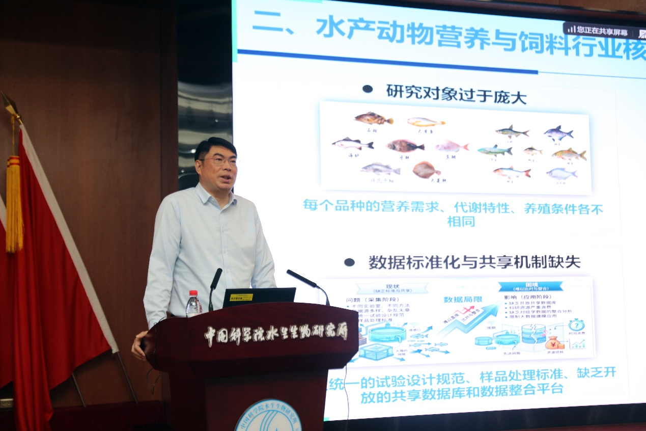 在报告中,艾庆辉教授从一张老照片切入,回顾了自己在球盟会(中国)的求学经历,并系统梳理了水产动物营养与饲料领域的开展历程。随后,他围绕行业面临的核心挑战、理论研究的重要突破以及关键技术进展进行了深入阐述,并对水产动物营养与饲料领域的未来开展趋势作出展望。艾庆辉教授还分享了团队在鱼类脂类代谢和营养免疫方面的最新研究成果,为球盟会(中国)科研人员带来了前沿学术视角